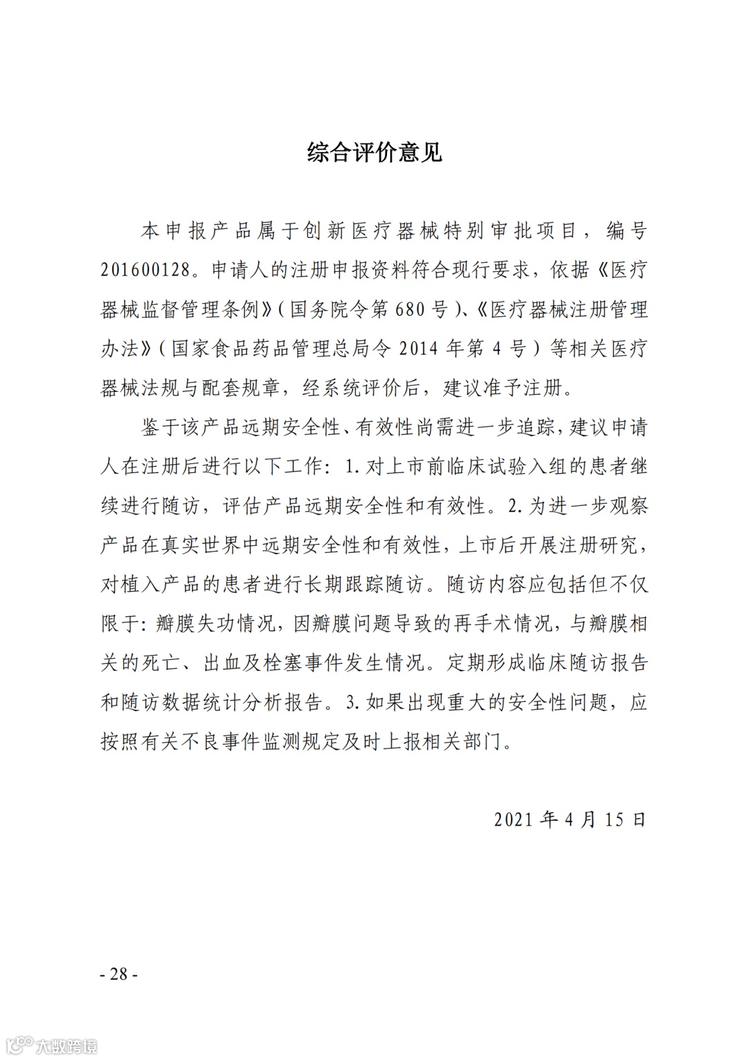 近日,沛嘉医疗科技(苏州)有限公司申请的“经导管主动脉瓣系统”通过器审中心审批,获准上市。器审中心发布了其审评报告,详情如下: