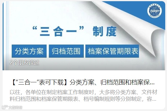 A:可以。档案分类方案、归档范围和保管期限表(即“三合一”表)是一起的,实现过程参见本公众号文章《如何自动或半自动地开展电子档案收集?》。