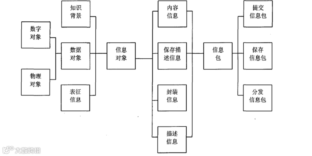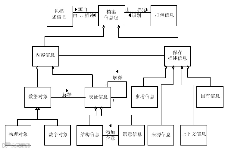 为了对信息对象进行全面而准确的描述,OAIS引入了信息包的方式,实现了信息对象的自包含、自描述、自证明: