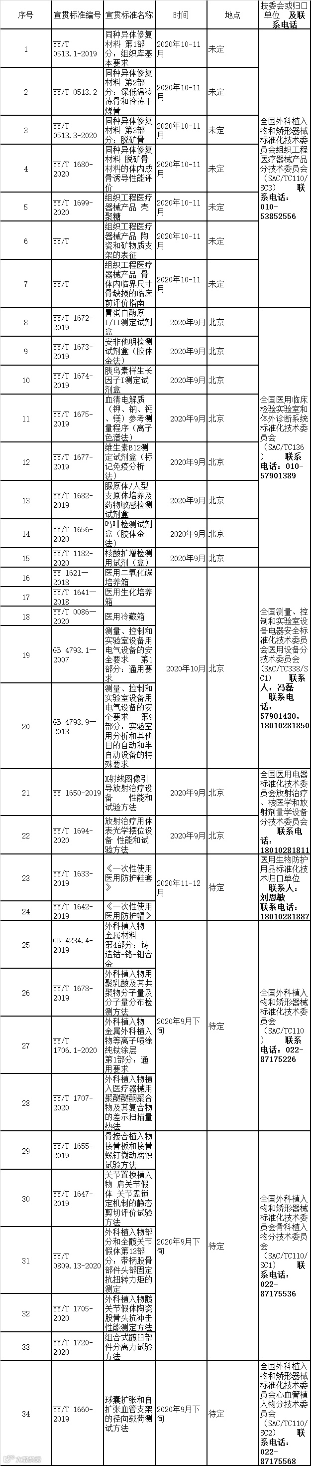 2020年医疗器械标准宣贯计划