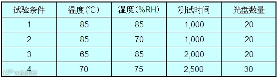 CD-R档案级光盘记录前,TE ≤0.45,FE ≤0.5;记录后,BLER < 50,E32=0, -0.15< Sym <0.15;光盘温湿度耐候试验,在温度80℃、相对湿度85%的环境条件下,放置96小时,BLER < 150,E32=0。
