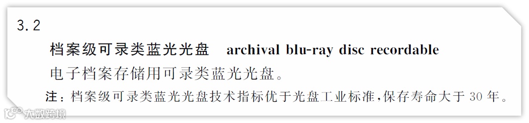 我们再来看一下DA/T 74-2019《电子档案存储用可录类蓝光光盘BDR技术要求和应用规范》中的定义: