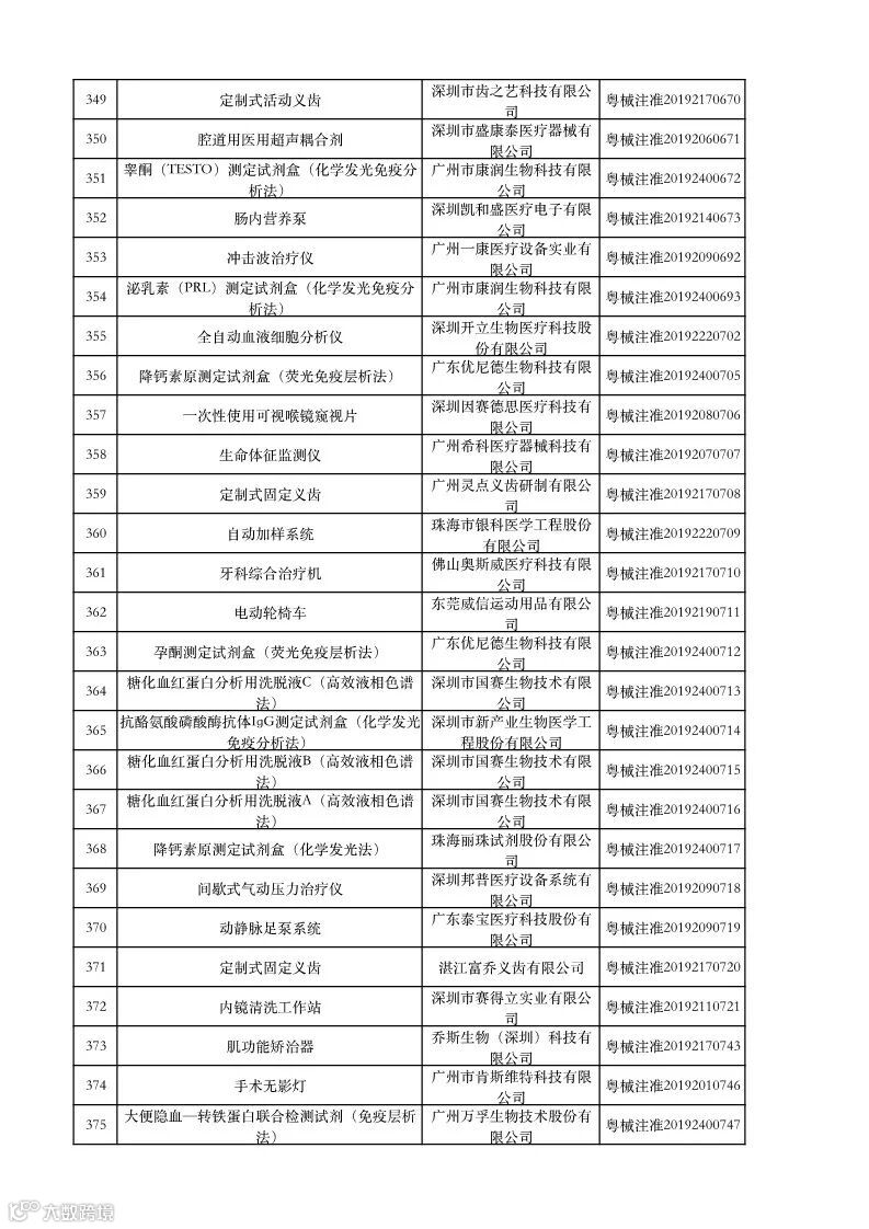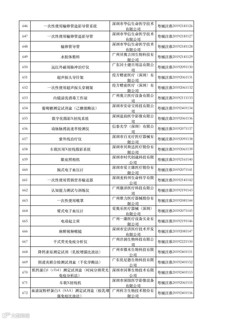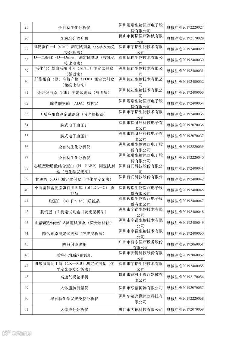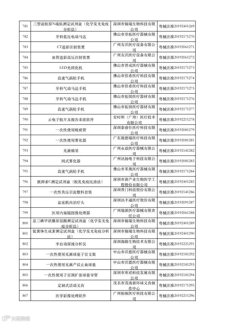 2019年1-12月,广东省药品监督管理局共批准注册第二类医疗器械产品875个,以下为具体产品目录: