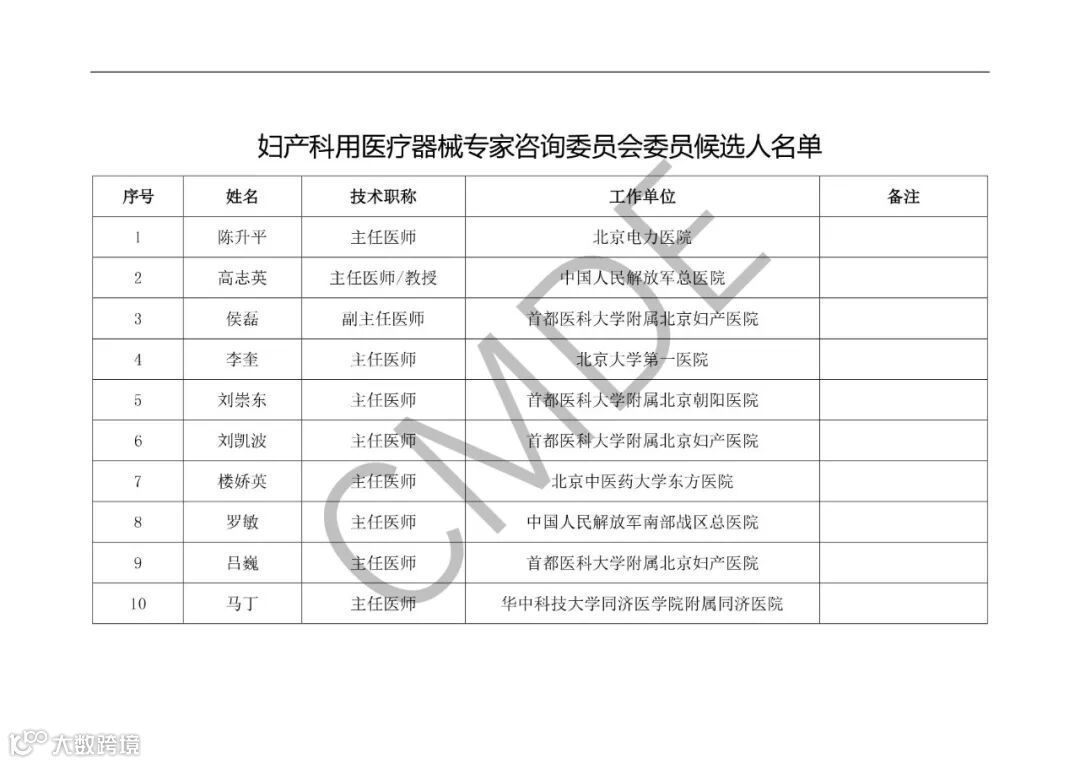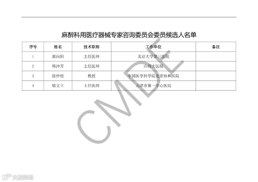 2019年11月12日,器审中心发布《关于公示医疗器械技术审评专家咨询委员会第三批委员候选人名单的通知》,因审评工作需要,器审中心开展了第三批专家委员候选人遴选工作,目前共征集408名专家委员候选人。现予以公示。