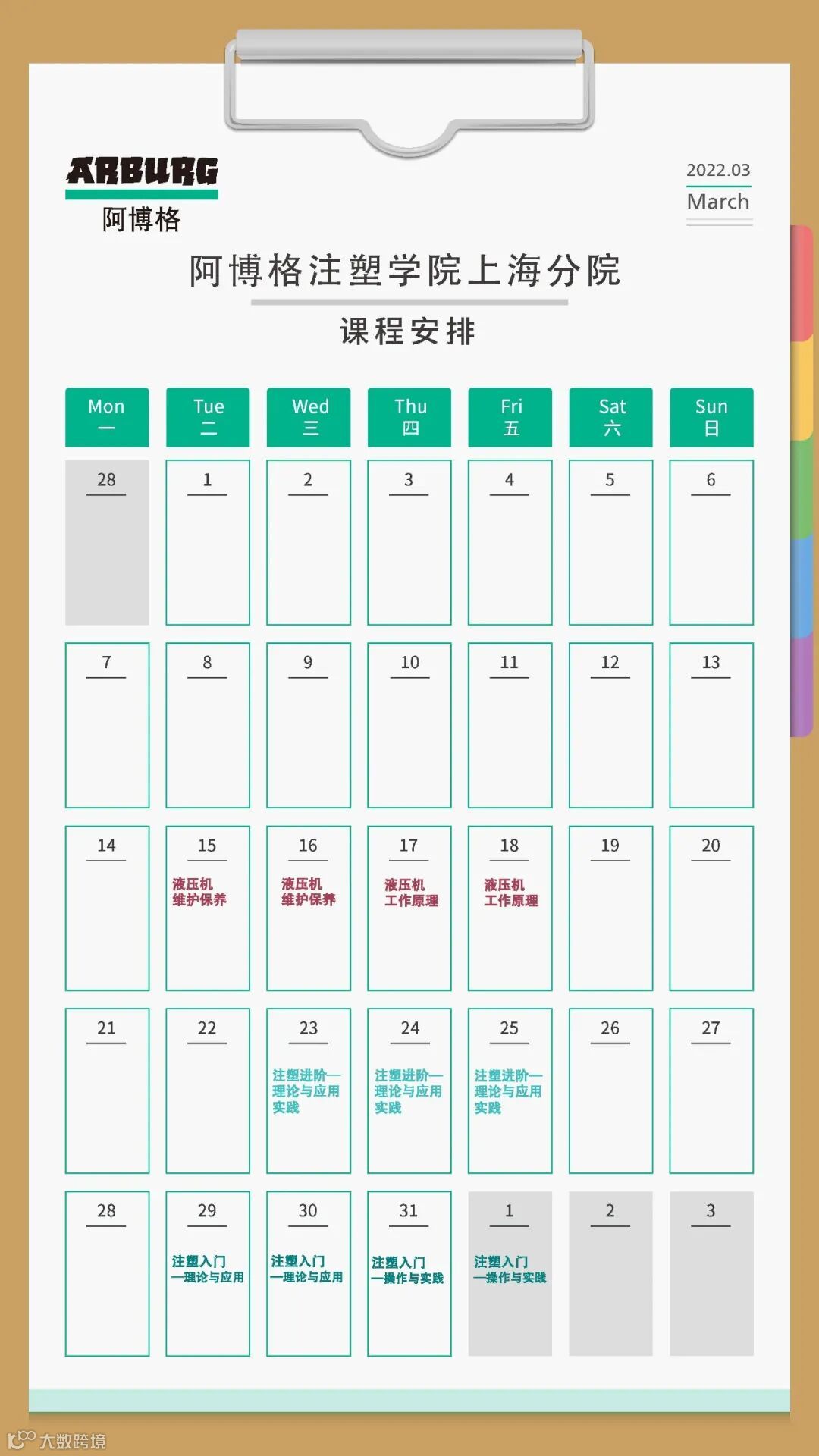 请查看阿博格3月课表