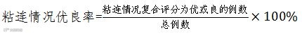 综合评价的复合指标为粘连情况的优良率,粘连情况优良即为临床可接受的粘连情况,公式如下: