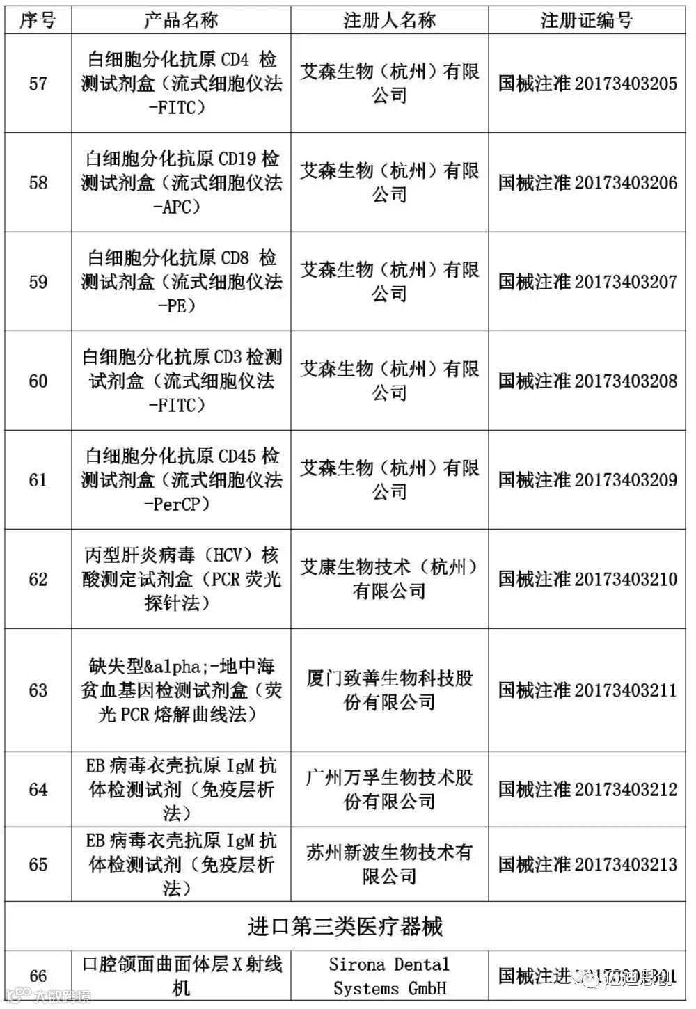 2017年5月,国家食品药品监督管理总局共批准注册医疗器械产品100个。其中,境内第三类医疗器械产品65个,进口第三类医疗器械产品18个,进口第二类医疗器械产品17个(见下图)。