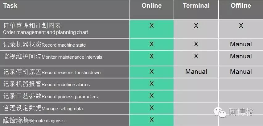 ALS加装十分简便,采用I/O模块,将通过采集以下7个信号来进行生产管理。