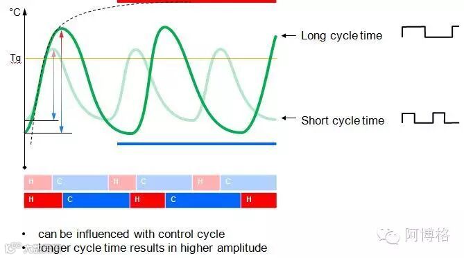 可实现的温度变化波动依靠模温机的设置,也依靠不同阶段的切换调整