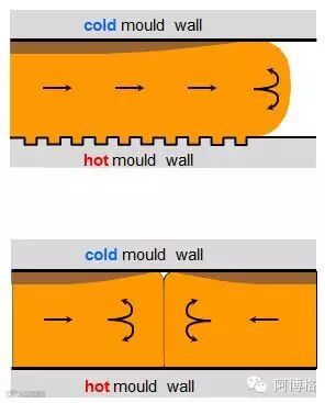 在较长的循环时间内热量渗透的深度不断增加,在型腔表面保持也保持热辐射