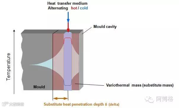 图示这块标示在注射过程中改变温度,此块是由可替换的热渗透深度决定的。