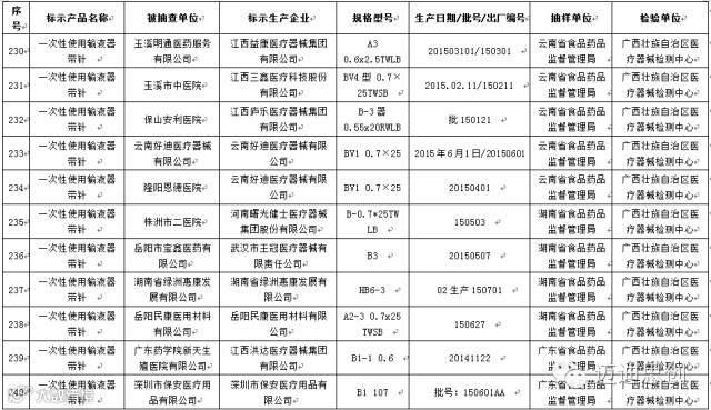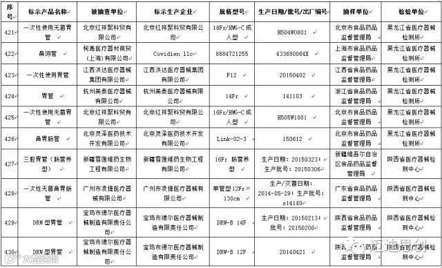 2.国家医疗器械抽验(标识标签说明书等项目)不符合标准规定产品名单
