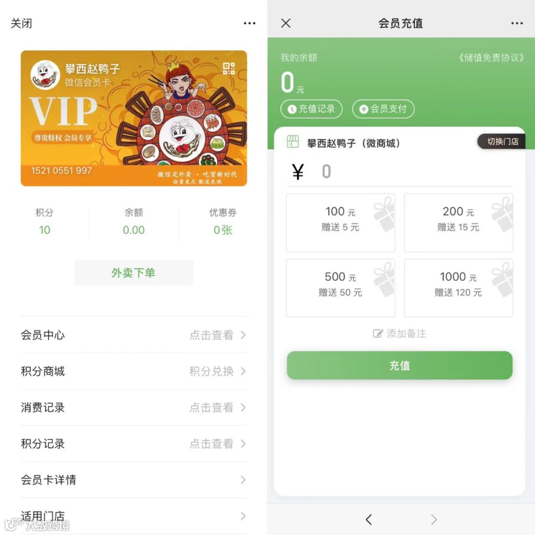 不仅如此,会员储值余额可以在「攀西赵鸭子」的11个店通用,消费者可以去任意门店充值、消费。既方便了顾客,又能提高复购频次,增强顾客的粘性。