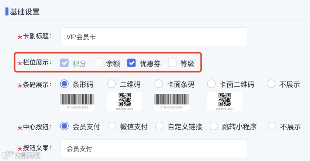 5、解决了商户在设置会员卡时,由于失误操作导致会员信息不同步问题。商家在会员卡基础设置页开启“积分”时,要先将设置页勾选栏中“余额、优惠券、会员等级”关闭一项。