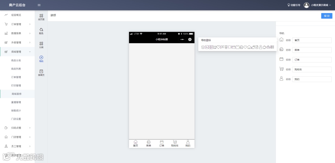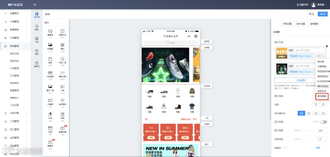 a.登录商家云后台,在商城装修页面选择小程序链接