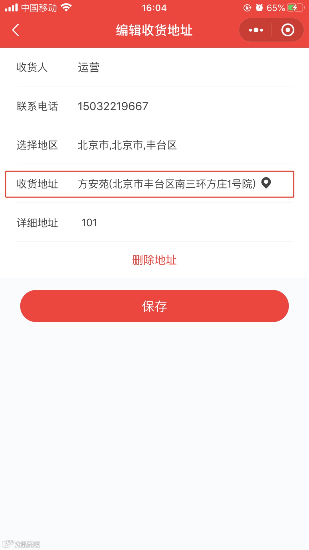 2.消费者在商城小程序上新增地址时,必须地图选点,以避免即时配送出现无经纬度信息导致超出配送范围问题。如没有地图选点,则提示收货地址不能为空。