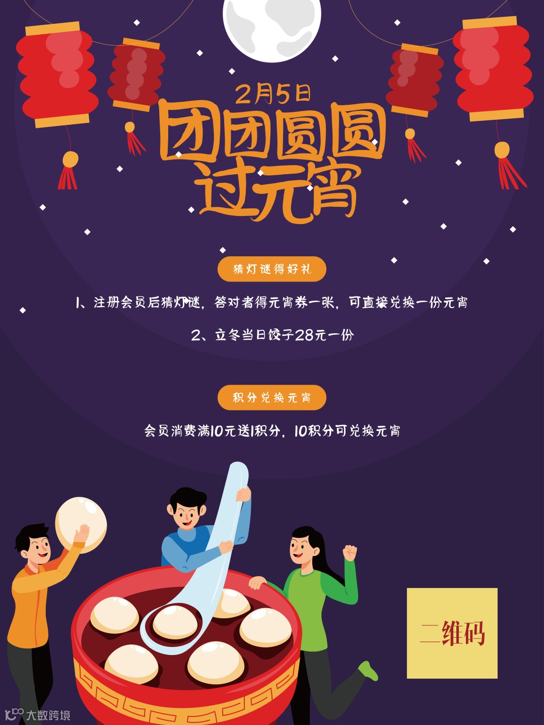注册会员后猜灯谜,答对者得元宵券一张,可直接兑换一份元宵;