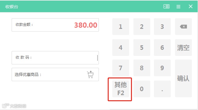 2.【其他支付页面】现金、银行卡、会员支付新增快捷键F1、F2、F3。