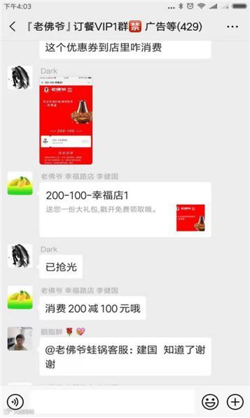 玩法一:群内优惠券投放,先到先得。替代群内发红包的模式,节省红包所造成的成本,排除专门抢红包的无价值顾客,红包只能1个手气最佳,抢优惠券可以设置多张,营销多个顾客。