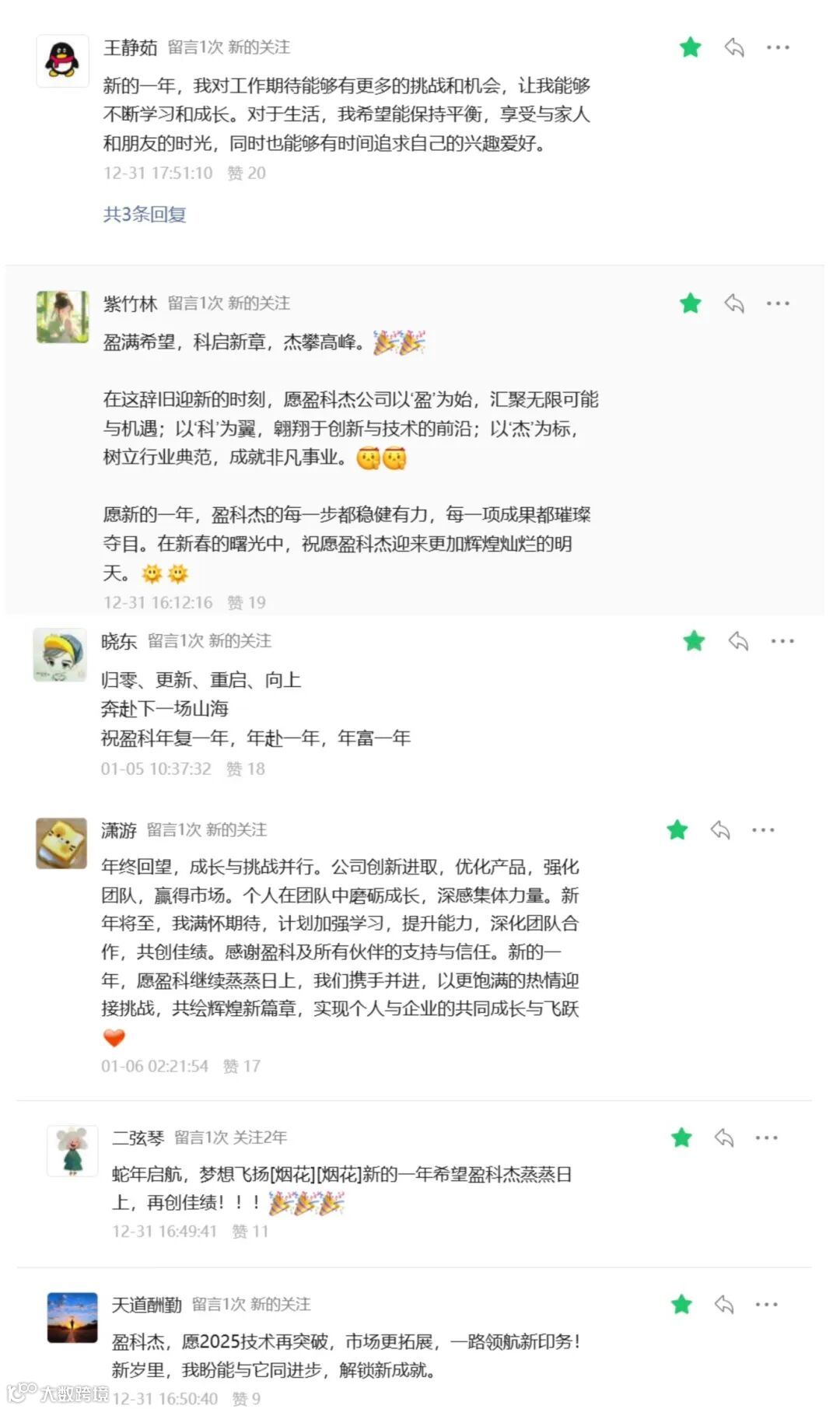 恭喜以上幸运读者在《再见2024,你好2025》一文中凭借优质评论获得了盈科杰专属咖啡杯一套,礼品已全部发放完毕。感谢大家的积极参与和一直以来的支持,期待下次活动与您再次相遇!