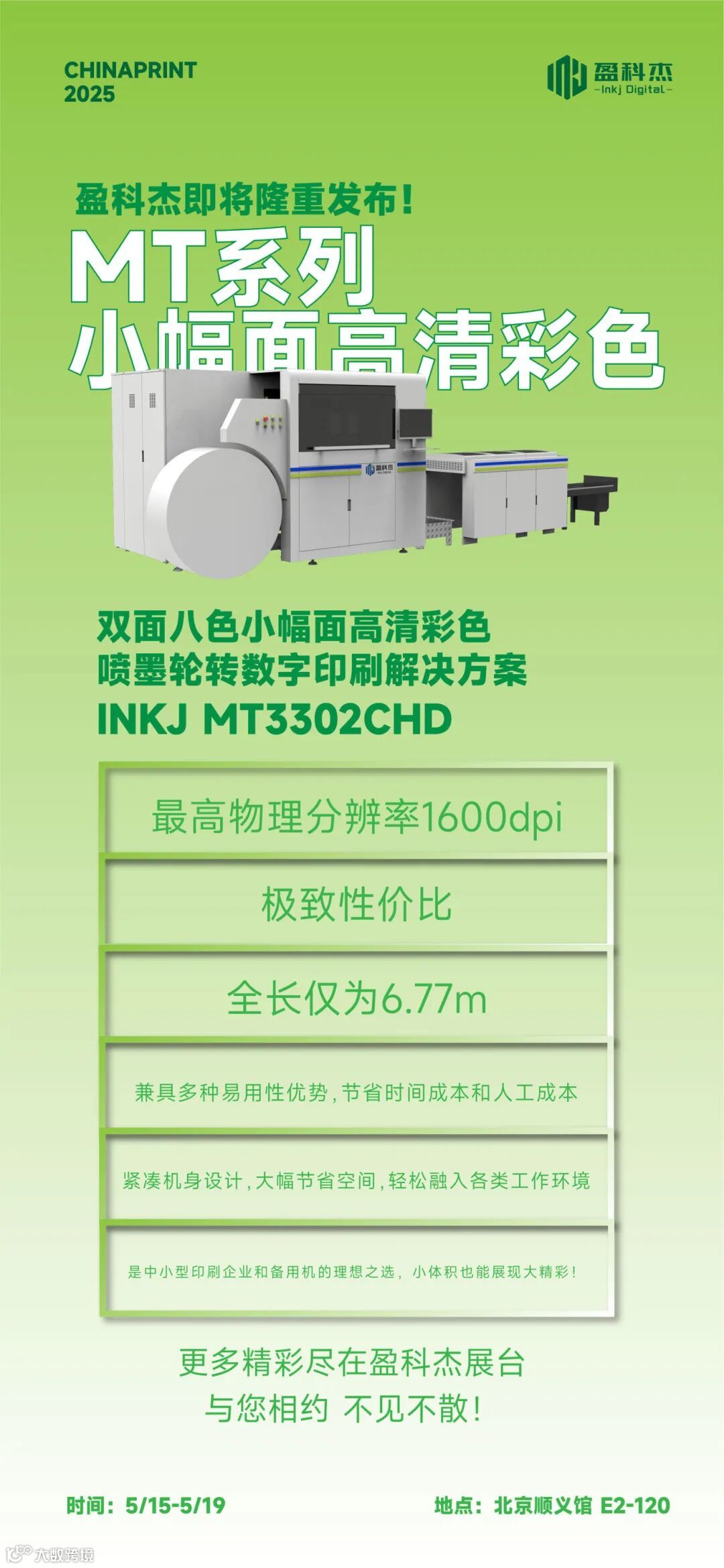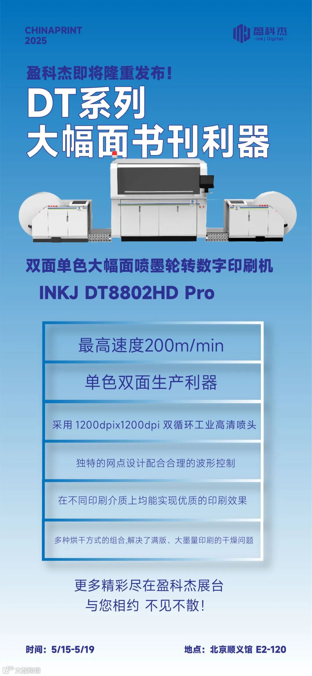 本届展会,盈科杰以“喷墨新方案 创造新价值”为主题,将携POD书刊与包装印刷设备的最新成果,即将震撼亮相E2馆120展台,为全球印刷行业带来一场喷墨印刷技术的盛宴!