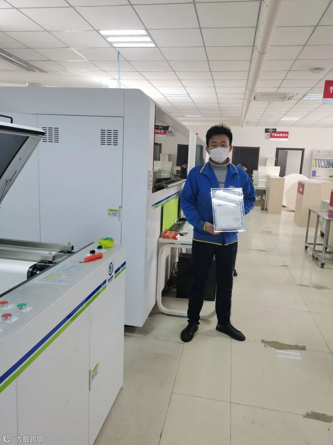 为表彰他们为公司创造的价值与收益,对喷墨数字印刷事业的默默付出,盈科杰对以上操作人员颁发了“喷墨数字印刷操作能手”技能证书与一份精美的礼品,受到这突如其来的认可和肯定,无不感觉意外和感动,有操作人员表示“这份荣誉的获得也与盈科杰的服务工程师密不可分,无论从设备进场安装调试到设备正常运转,他们在现场手把手教学,一遍遍地对我们进行培训指导,这份功劳应有他们的一份。”同时我们号召其他操作人员熟练掌握喷墨数字印刷设备的操作流程,积极为企业及喷墨印刷事业贡献更多力量。