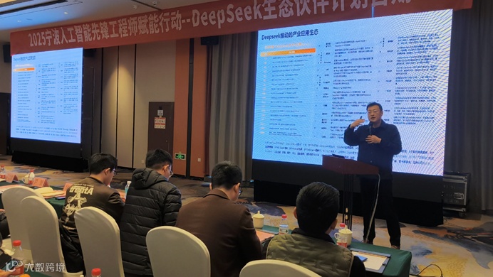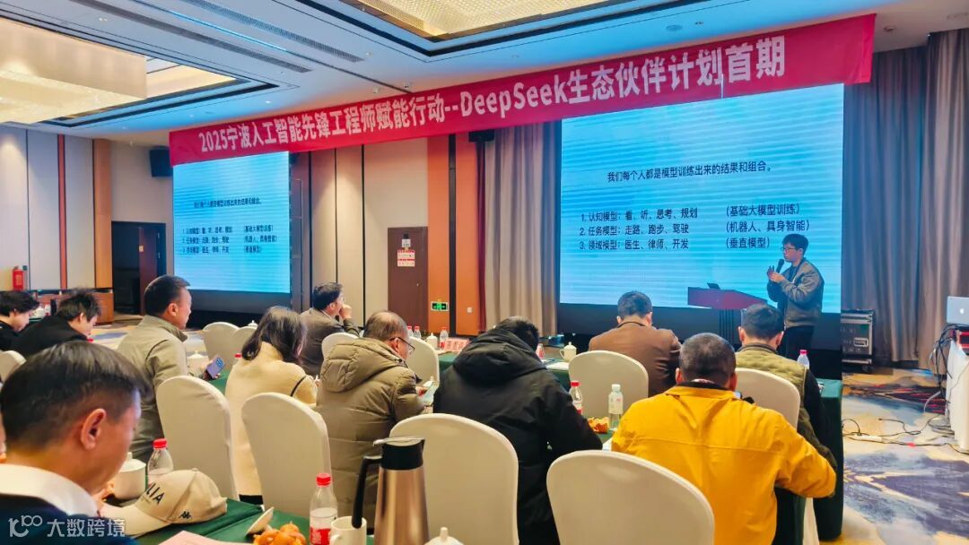 为深入贯彻落实国家关于发展人工智能产业的战略部署,助力宁波争创国家级人工智能应用创新示范区,2月18日,由宁波市数字经济局(市经信局)、人工智能省部共建协同创新中心(浙江大学)宁波中心联合主办的2025宁波人工智能先锋工程师赋能行动-DeepSeek生态伙伴计划首期培训在宁波石浦大饭店圆满举行。