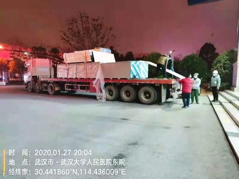 当时最大的困难是物流,项目要求必须当晚到货,1月28日下午6点前必须完工。当时的武汉已经禁止机动车、货车行驶,很多货车都不敢出来。