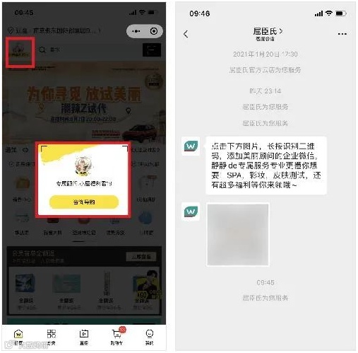 屈臣氏将小程序玩转地风生水起,虽然有非常多的小程序,不同小程序承担了不同的作用,但都会相互跳转。小程序注册授权时会获取用户定位,随机分配最近门店的导购,推送企业微信号,添加导购企业微信后,由导购拉入企业微信群。