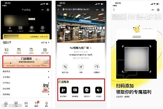云店将屈臣氏的线下门店和线上的网上商城完全打通,线下门店的用户可以添加企微账号之后自动推送云店小程序,直接购买,线上的公众号和社群粉丝,也可以通过云店下单,再到线下门店自提。