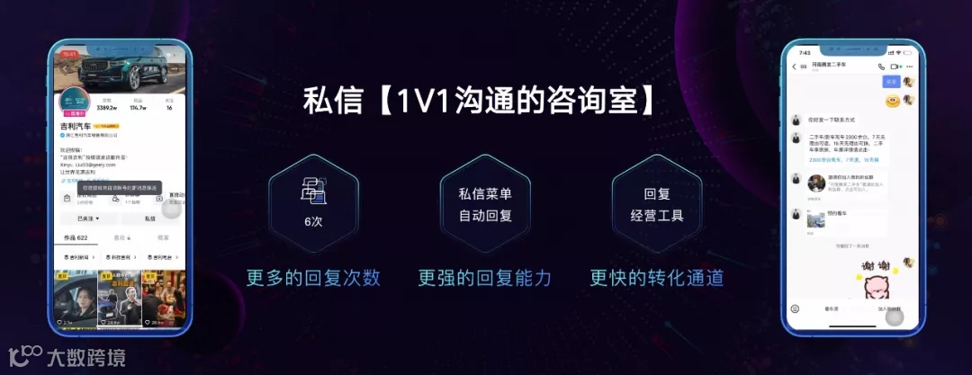 3. 私信,它是1V1沟通的咨询室。对于企业号用户来说,私信提供了与用户深入沟通互动的能力。抖音此次在固有私信功能的基础上,做了三方面的产品服务增入: