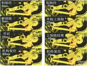为实现电动开启功能,设计了一个新的变拓扑结构的电动开启支链,机构带有间歇性的复合件,并且具有确定的机构运动时序和停歇比。