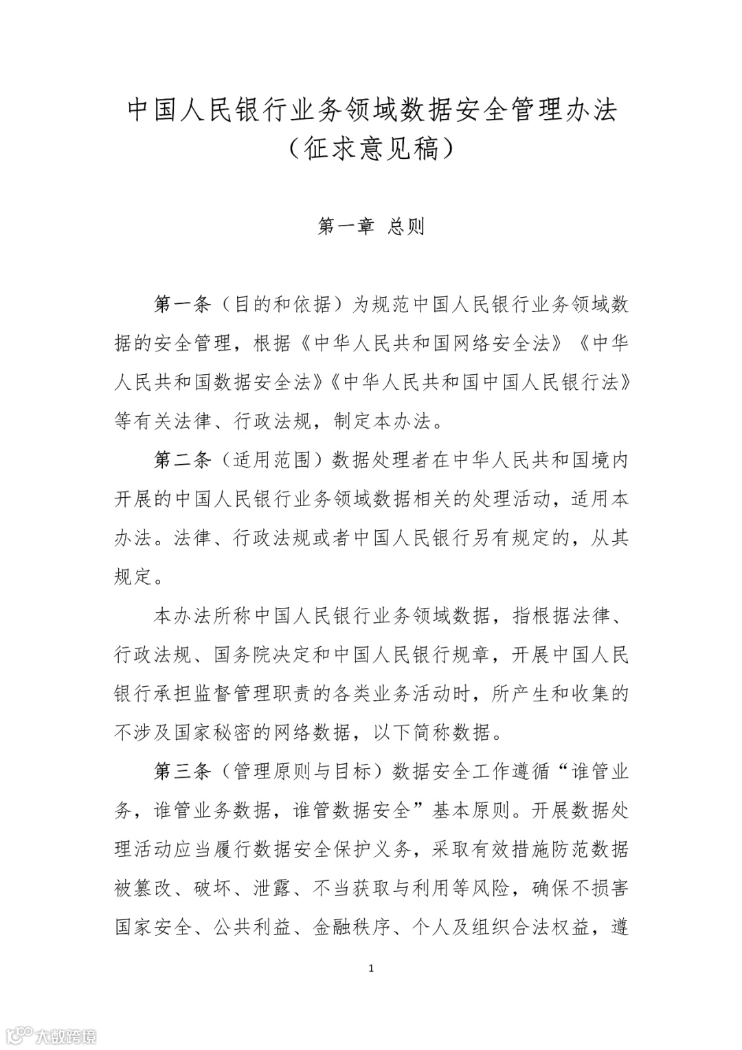 7月24日,为加强中国人民银行业务领域数据安全管理,央行发布《中国人民银行业务领域数据安全管理办法(征求意见稿)》(下称《办法》),并向社会公开征求意见。
