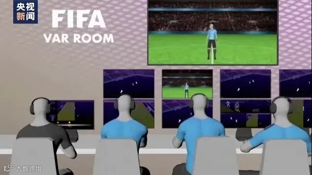 随后由视频助理裁判视情况与场上主裁判沟通。主裁判判罚完成后,半自动越位识别系统会生成3D动画图像,在场内大屏幕以及电视机上播放,来更直观地展示球员越位的具体位置。