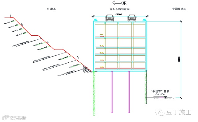 东侧:紧邻金河东路北管廊,管廊基底标高-27.2m,宽度24m,土方已经开挖