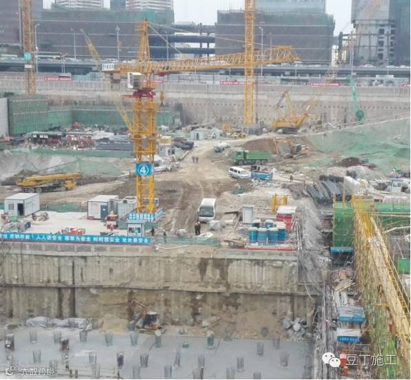 南侧:紧邻文化中心,基底标高-27.2m,土方已经开挖至-14m;