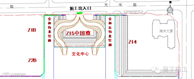 南侧:文化中心地下5层,地上14层,为保证本项目地下结构的顺利实施,其地上部分将在本项目结构出±0.0 后再施工;