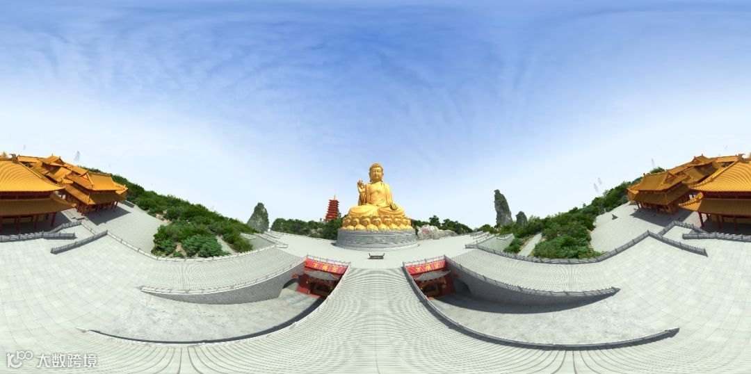 5. 大伊山全景 VR 影片《佛教圣地》 全景 VR 影片《佛教圣地》,通过全三维数字影像技术,将连云港灌云大伊山复原,并将其呈现为“空中之城”,观众带上 VR 眼镜,仿佛身临其境,领略高山流水、瀑布叠泉、千年佛塔……