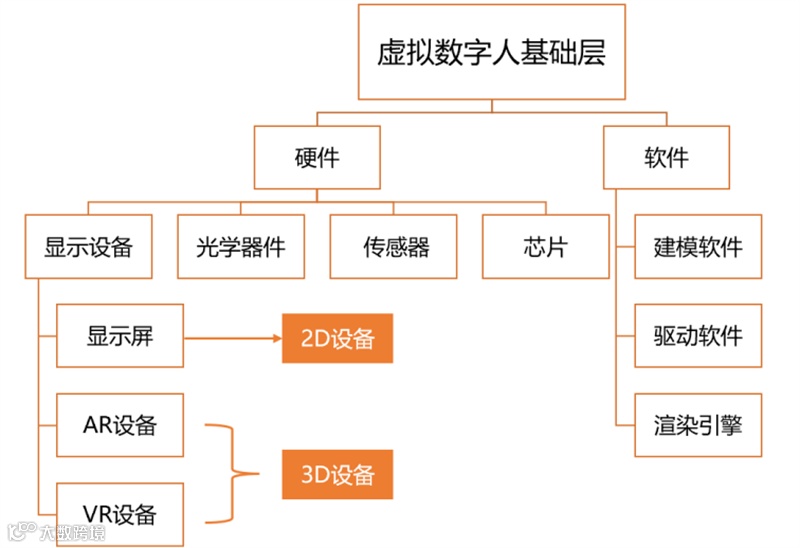 基础层为虚拟数字人提供基础软硬件支撑,硬件包括显示设备、光学器件、传感器、芯片 等,基础软件包括建模软件、渲染引擎。显示设备是数字人的载体,既包括手机、电视、投影、LED 显示等 2D 显示设备,也包括裸眼立体、AR、VR 等 3D 显示设备。光学器件用于视觉传感器、用户显示器的制作。传感器用于数字人原始数据及用户数据的采集。芯片用于传感器数据预处理和数字人模型渲染、AI 计算。建模软件能够对虚拟数字人的人体、衣物进行三维建模。渲染引擎能够对灯光、毛发、衣物等进行渲染,主流引擎包括 UnityTechnologies 公司的 Unity 3D、Epic Games 公司的 Unreal Engine 等。总体来看,处于基础层的厂商已经深耕行业多年,已经形成了较为深厚的技术壁垒。