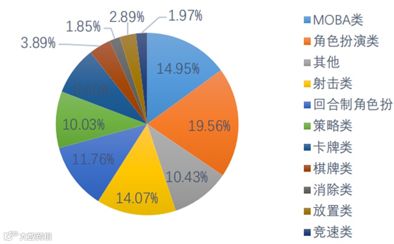 ▲2021 收入排名前 100 移动游戏产品类型收入分布