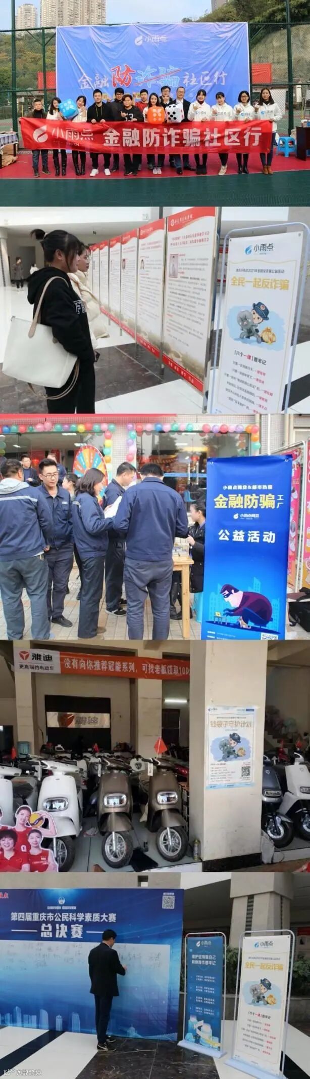 2021年,小雨点全程赞助第四届重庆市公民科学素质大赛。在大赛期间积极发挥自身科技实力优势,为大赛提供科普知识、防金融诈骗、网络诈骗等与群众生活紧密相关的知识题库,并为观众提供精美礼品。数十万群众在活动过程中科学素质得到提升,同时其金融反诈意识也得到强化。