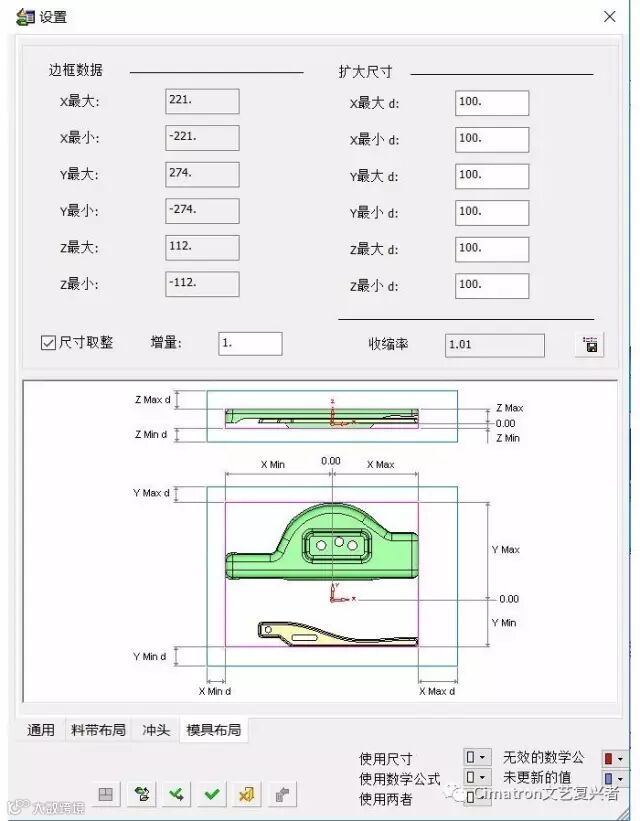 比如设定型腔模的缩水率,自动获取产品边框尺寸及设定模板放量等。