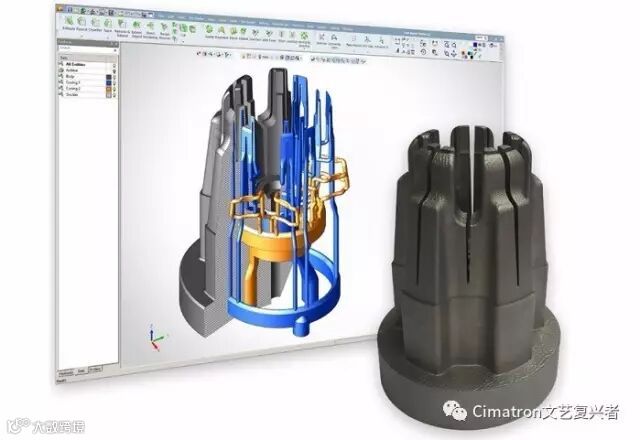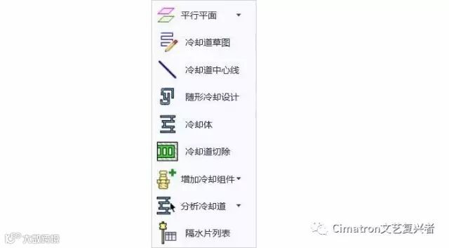 此外,由于3D打印技术的提升,Cimatron还提供了设计随形水路的功能,用户可以由此打印出随形水路的镶块装配到模具上,以使得到更好的成型冷却效果。