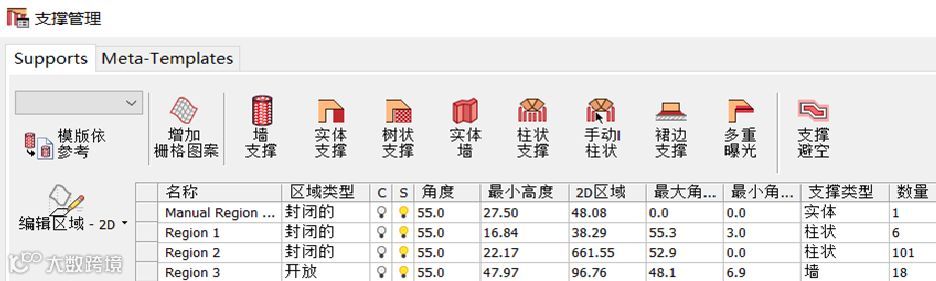 ——树状、柱状、晶格状、裙边、实体、薄壁墙、自定义图案等