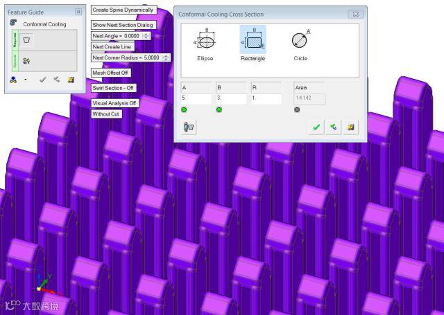 新的随形冷却功能,显示剖面对话框
