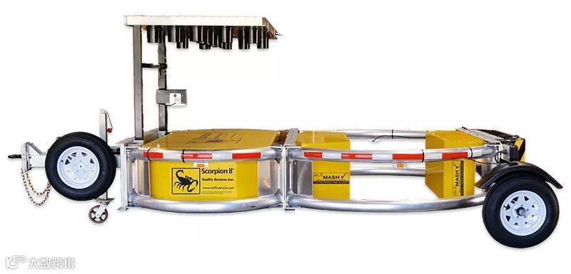 Scorpion11TMA 卡车防追尾装置研发历时 17 年,通过了 2000 多次测试,是世界首款通过 MASH 测试的卡车式衰减器,可以说是现如今最安全、最可靠的卡车防追尾装置。