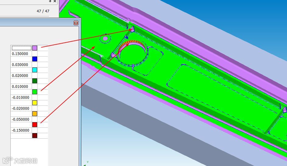 Cimatron 在机床仿真模块里,提供了自动比对功能,可以准确地反映出实际的加工结果。