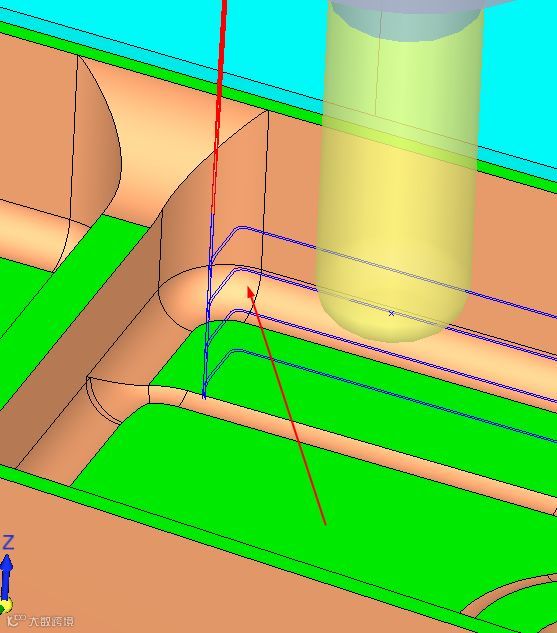 Cimatron软件对于拐角处出现的震纹采取以下措施进行避免,减少或者消除钳工打磨工作量。