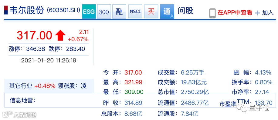 随后,韦尔股份的股票一路大涨,从2019年5月的38.47元/股,涨到如今的300多元/股。