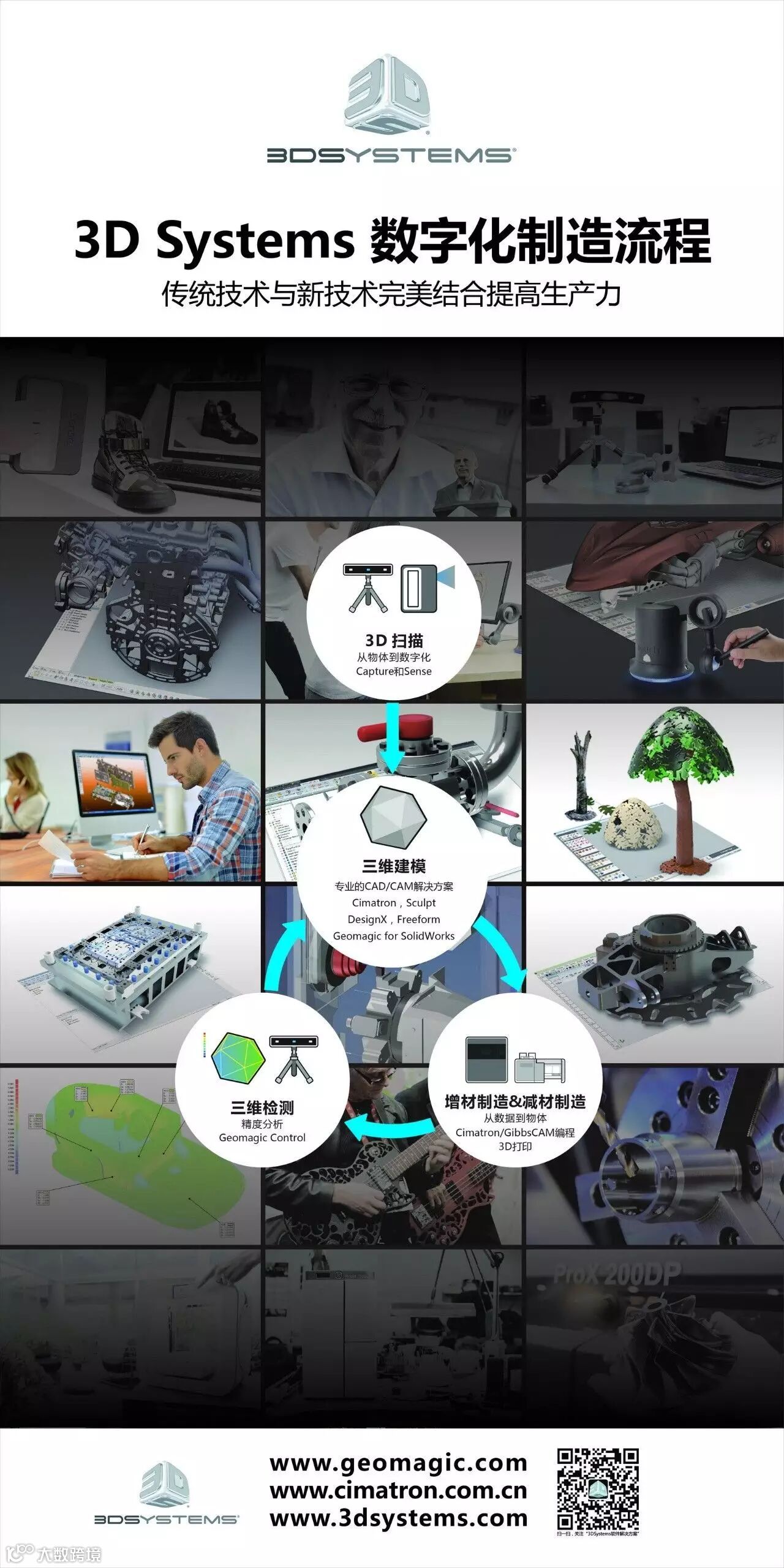 3D Systems公司提供“从设计到制造”全套解决方案,包括3D打印机、打印材料和云计算按需定制部件;其强大的数字化流程真正把创意带入生活,可选材料包括塑料、金属、陶瓷和食品等,获得专业人士和消费者的一致好评。3DS领先的医疗解决方案包括全套仿真、培训、互动式个人化的手术和患者特定解决方案以及牙科类设备上的应用等。3DS个性化的三维设计和检测产品提供最前沿的采集和触摸技术,成熟的集成式解决方案替代并补充传统方法,数据输入直接打印实物件减小设计新产品的时间和成本。这些解决方案都可用来加快设计、创造、沟通、原型或产生实物件,助力客户“制造未来”。
